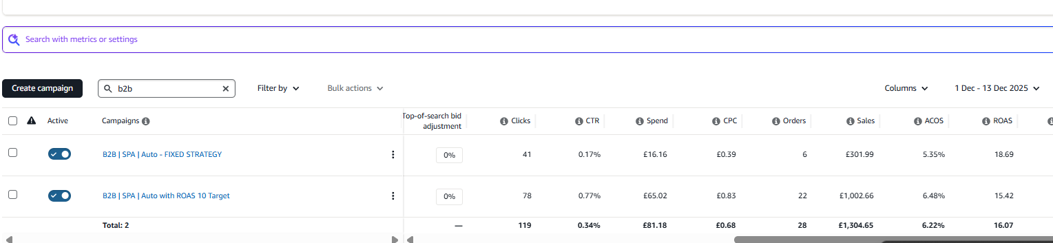 2. Set up the campaign: Create a Sponsored Products toggle on B2B targeting, and feed in those ASINs. Amazon handles the rest, serving your ads to verified business accounts.